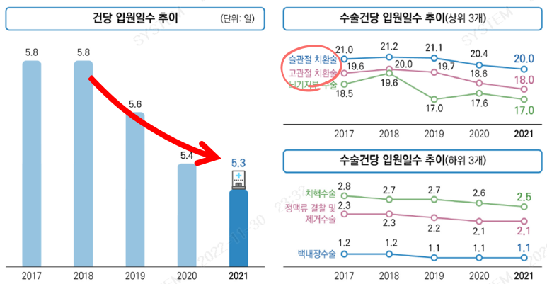 - 2021년 건당 입원일수가 긴 수술