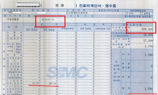 진료비 항목은 급여부분(공단+개인), 비급여 부분으로 나눠집니다.