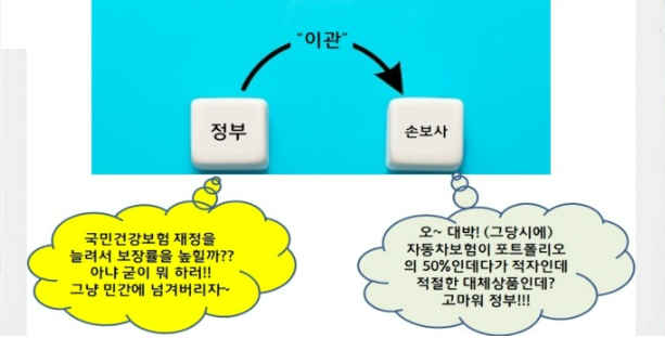 정부는 2001년 국민건강보험 재정위기 후 '실손형, (민영) 의료보험' 제도를 도입하기로 합니다. 정부는 재정을 늘려 보장률을 높이는 것보다 민간보험사로 넘기려 했고, 그 당시 손해보험사도 포트폴리오 대체를 위해 환영하였습니다. 그리고 보장 100% 실손 의료비를 판매하기 시작했습니다. 이 당시에는 손해보험사만 실손의료보험을 판매하였습니다.