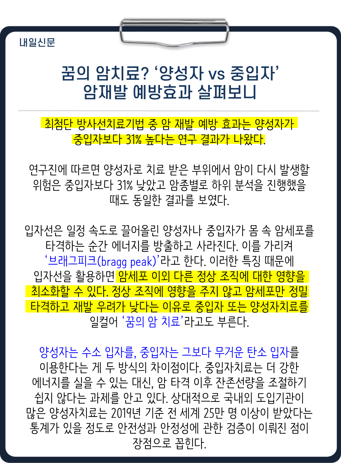 과학의 발달은 치료기술을 발전시켰습니다. 그리고 이러한 아프지 않고 부작용이 적은 치료방법을 이용하기 위해서는 '비용'이 소요됩니다. 덜 아프고, 부작용이 적고, 빠르게 회복되는 새로운 치료방법일수록 그 비용은 더 높습니다. 실제로 중입자치료의 경우 보험적용이 되지 않아 5천만원 이상의 자기 부담금이 필요합니다.
