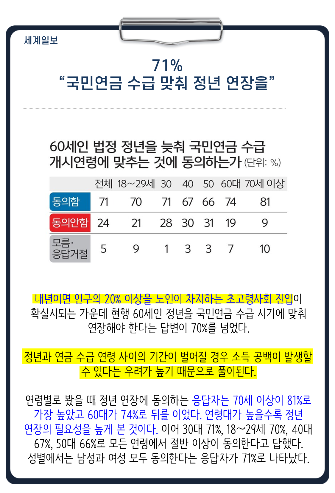 대부분의 유럽국가들은 정년=연금수령이라고 합니다. 그렇기 때문에 굳이 일을 더 하고 연금수령을 늦추는 것에 반대하는 것 입니다. 내가 노후준비를 제대로하고 연금을 받을 권리가 있는데 왜 근로를 더 하게 하냐는 것 입니다. 반면 우리나라는 정년과 연금수령시기가 다릅니다. 좋은 노후준비를 끊임없이 일 해야한다고 하면서 60세정년이후 65세 연금수령전까지 일을해야한다고 말합니다.