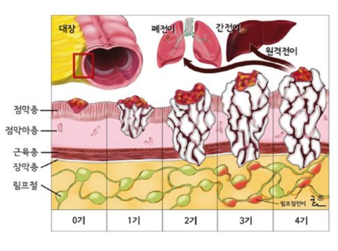 4기 : 대장암이 우리 몸의 다른 장기(간, 폐 등)로 전이된 경우