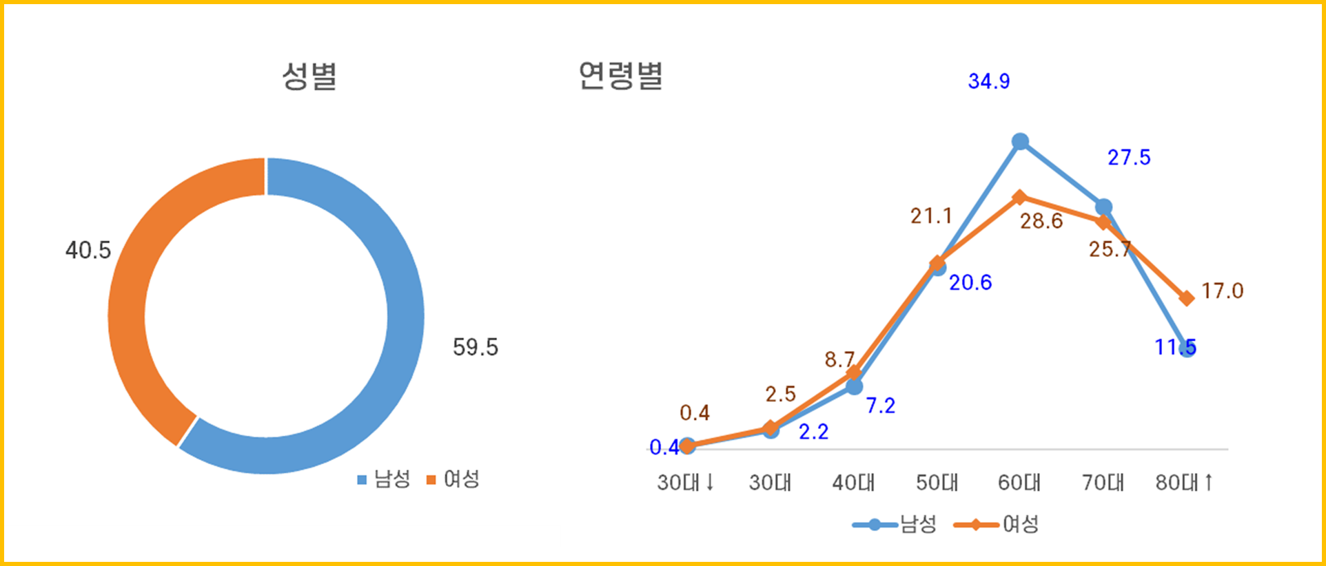 3. 나이를 타는 질병이다. 남녀모두 60대 이상이 70% 이상을 차지한다.