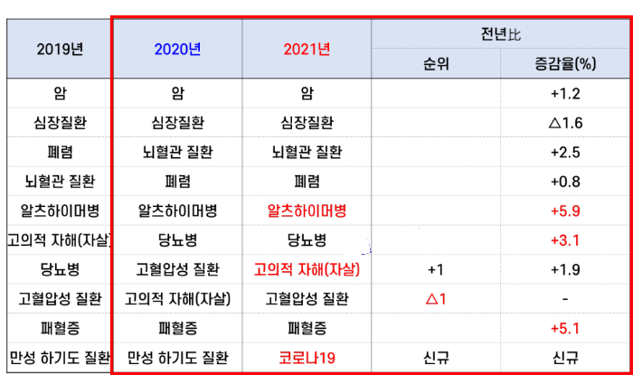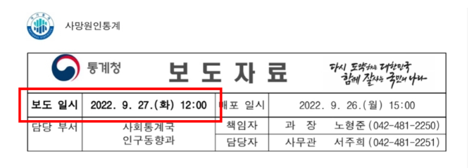통계청에서 매년 9월 직전 연도 사망원인 통계결과를 발표합니다. 2022년 9월에 발표한 자료가 가장최신 자료입니다.